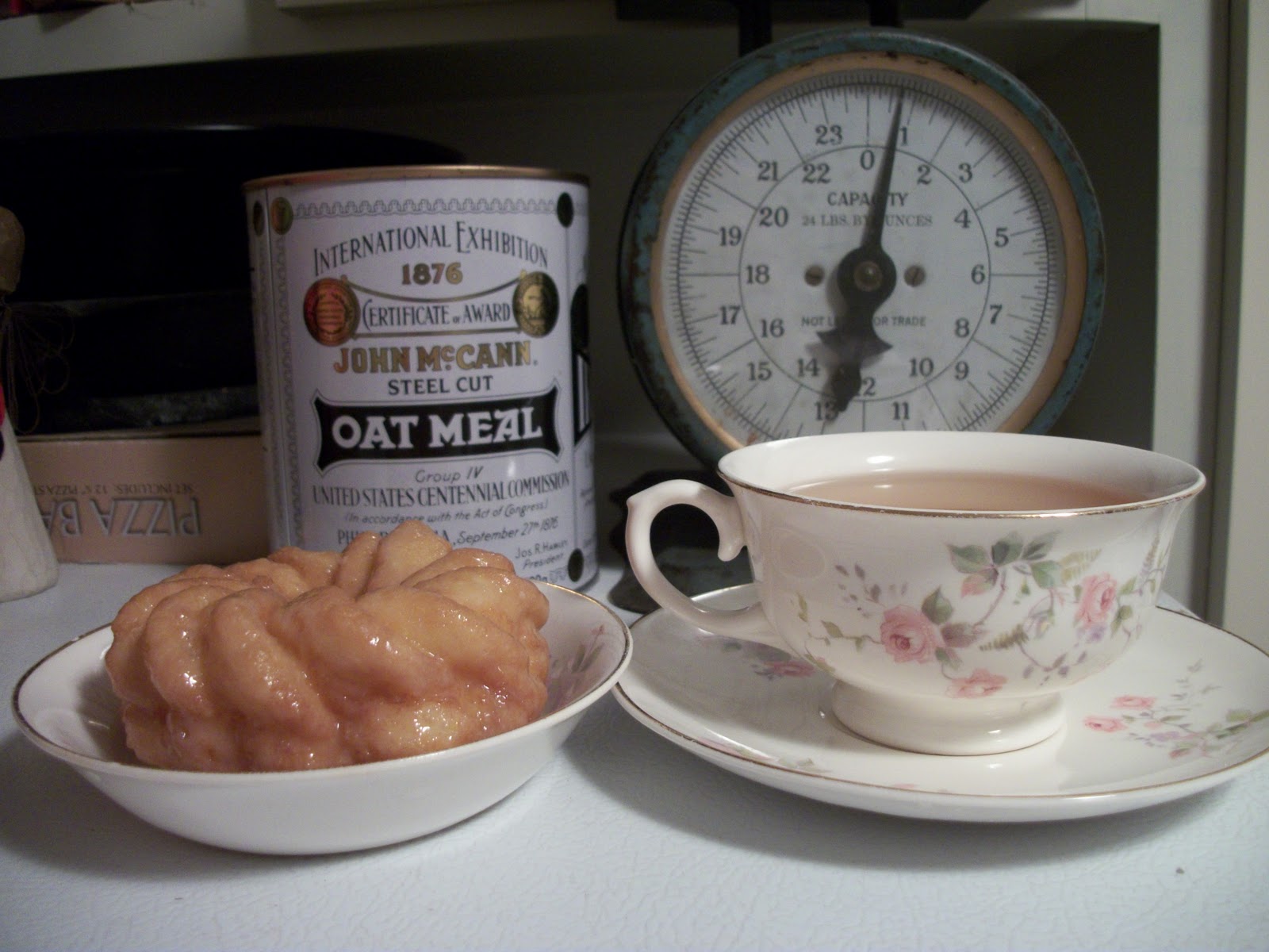 Every cup of tea needs a yummy baked goody of some sort. It can be sweet or savory. Whatever you like the best. Now today I wanted a donut. Not just any donut will do. It had to be a French crueller. I am not sure what makes it "French". What I do know is that it has a light sugar glaze on top. Inside, it is really light and airy. It's wonderful.